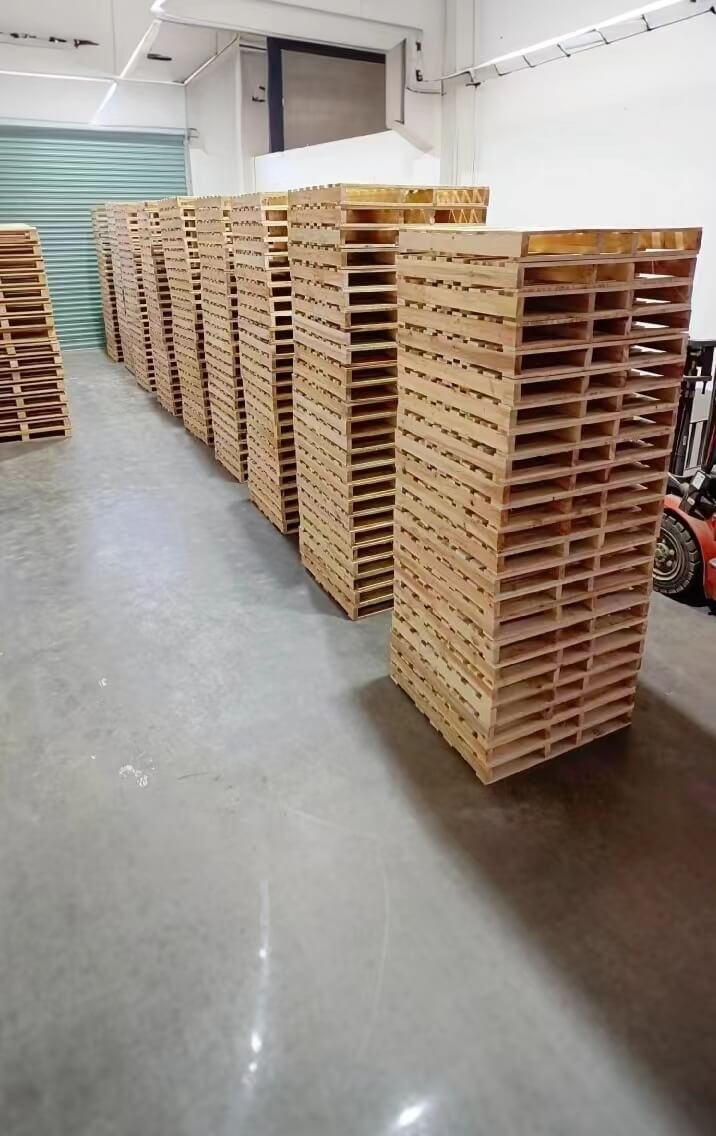 熏蒸木托盤是一種特制的用來(lái)承載重物的,以原木為材料的木制品。多次進(jìn)行干燥定型處理,消除內(nèi)應(yīng)力,減少水分,通過(guò)切割、刨光、斷頭、抽邊、砂光等精準(zhǔn)加工處理而形成型材板塊,然后采用具有防脫功能的釘子或者螺母,將型材板塊裝訂成半成品托盤,最后進(jìn)行精整、防滑處理和封蠟處理。